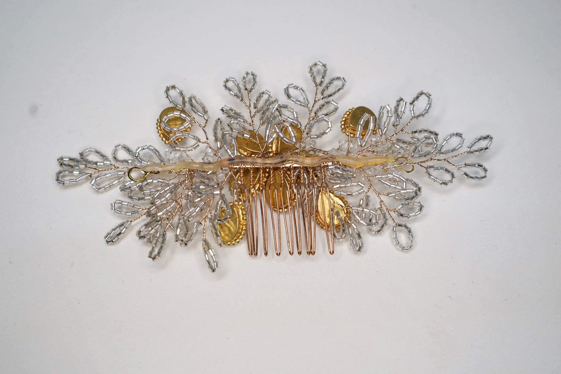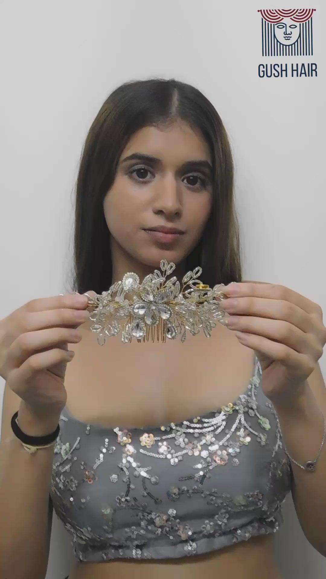 Elevate your hairstyle with this exquisitely embellished flower hair brooch. Crafted with delicate detailing, it adds a refined touch of elegance and femininity to any look. Perfect for special occasions or enhancing everyday style, this accessory effortlessly enhances your hair with a subtle yet sophisticated floral charm.