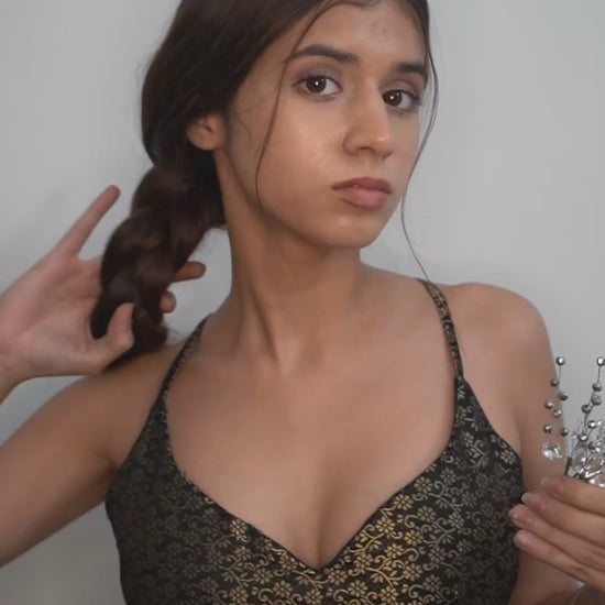 Add a touch of timeless elegance to your hairstyle with our Flower Hair Clip. Handcrafted with sparkling rhinestones and delicate bead embellishments, this piece is designed to resemble blooming floral branches. Its lightweight and flexible structure makes it easy to secure into braids, buns, or open hairstyles, ensuring a graceful finish for any occasion.